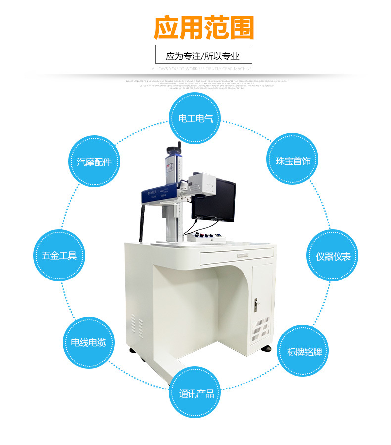 光纖激光打標機采用光纖激光器,振鏡掃描系統,輸出功率穩定,光學模式好,光束質量優異、打標速度快,效果好,效率高,能充分滿足客戶大批量生產需求。